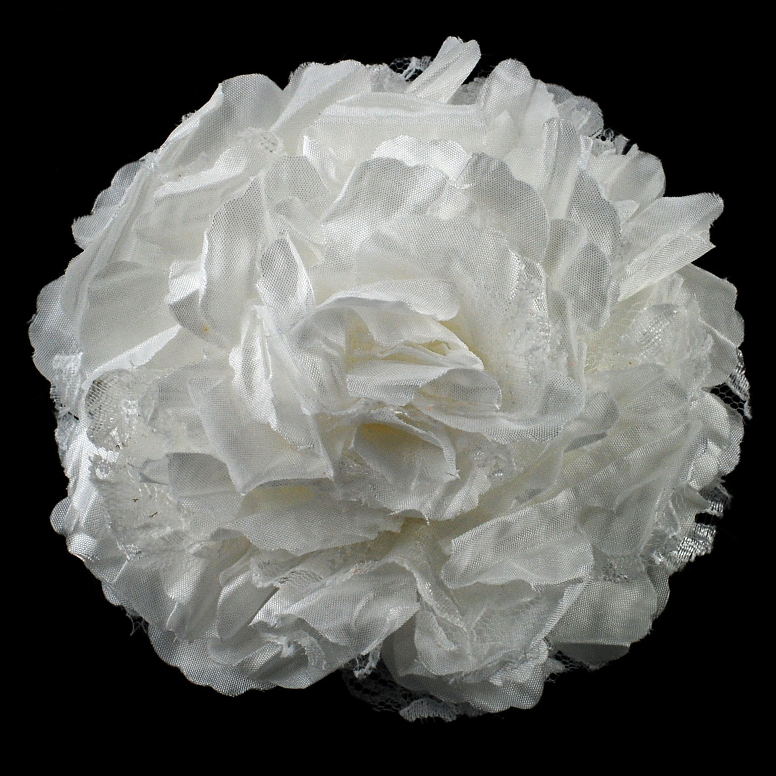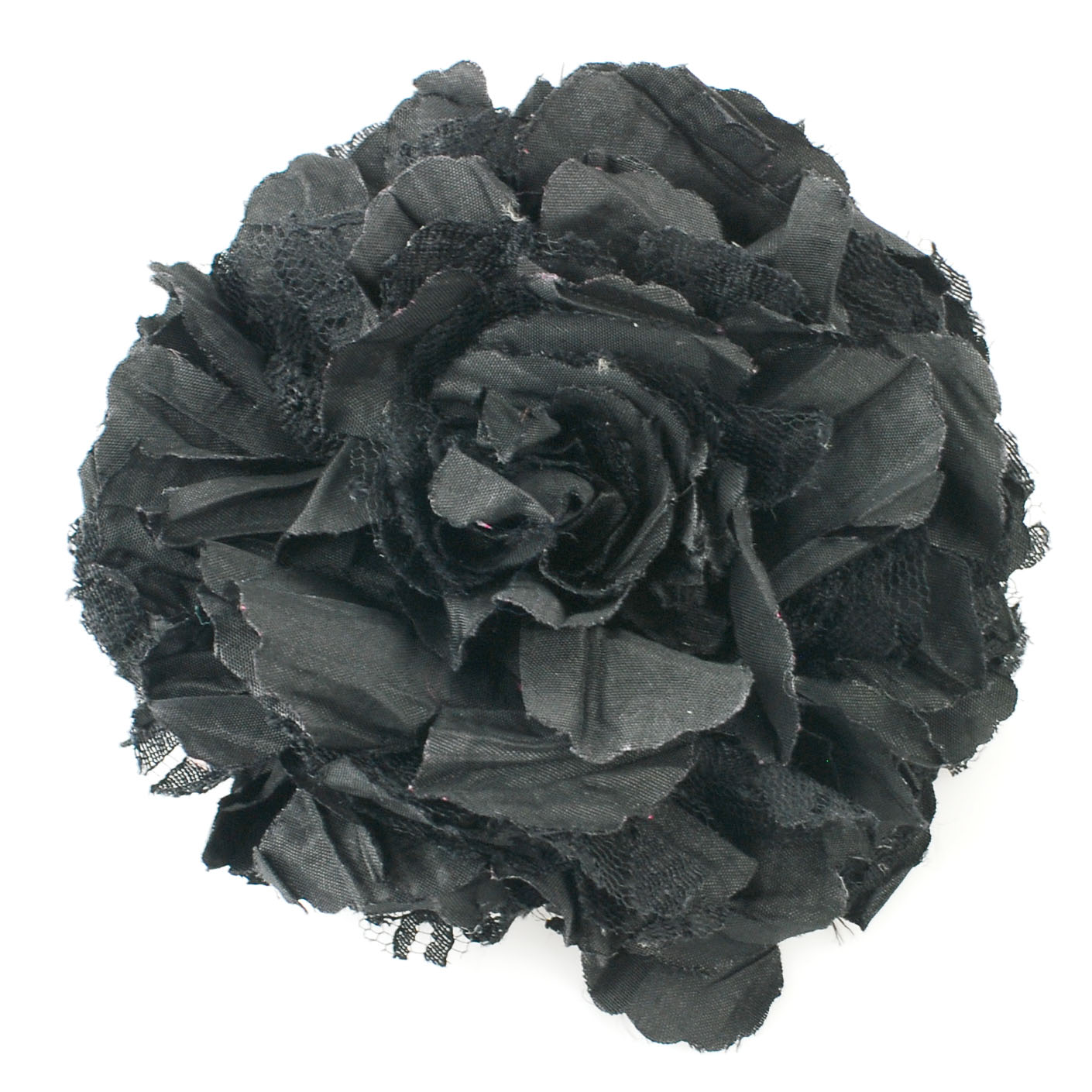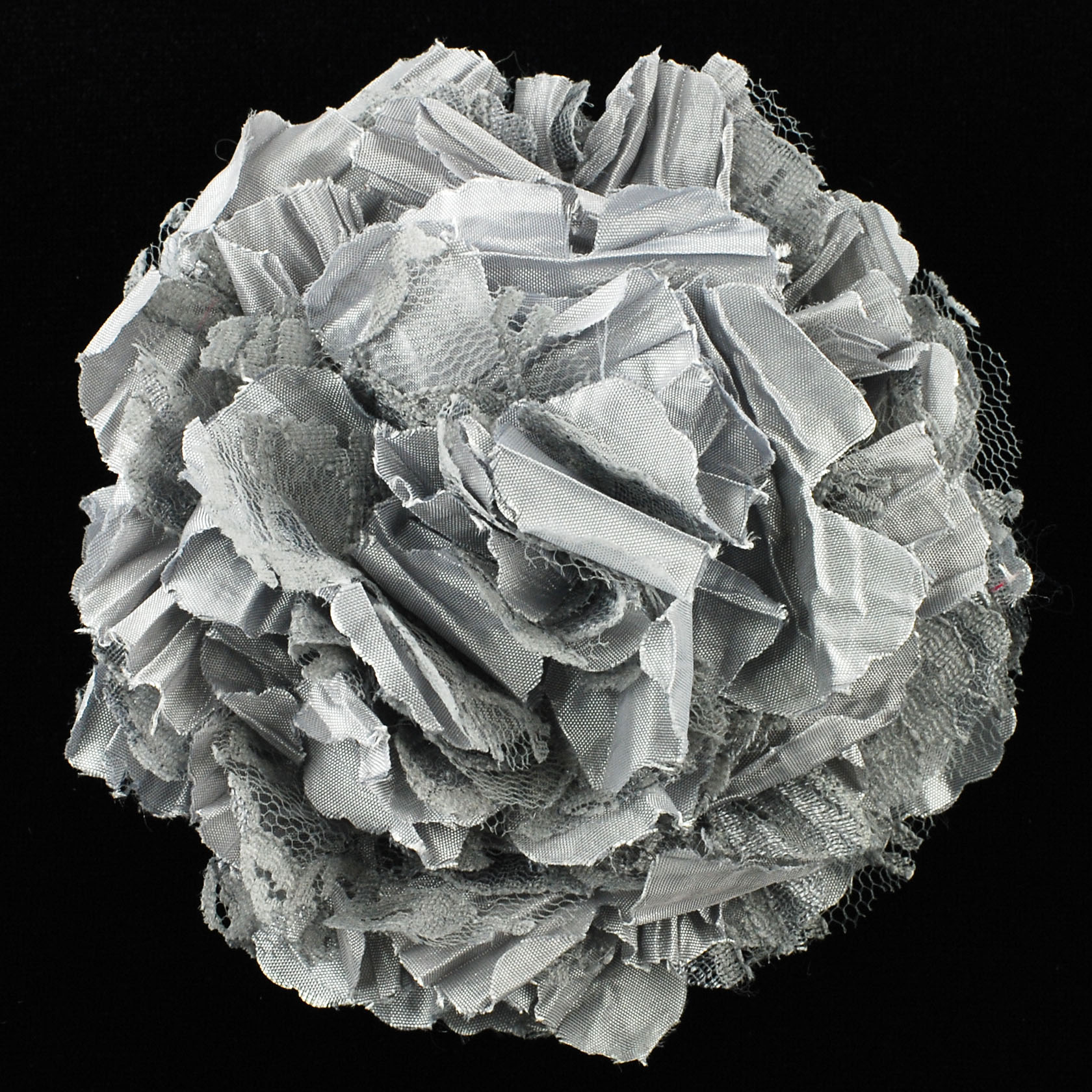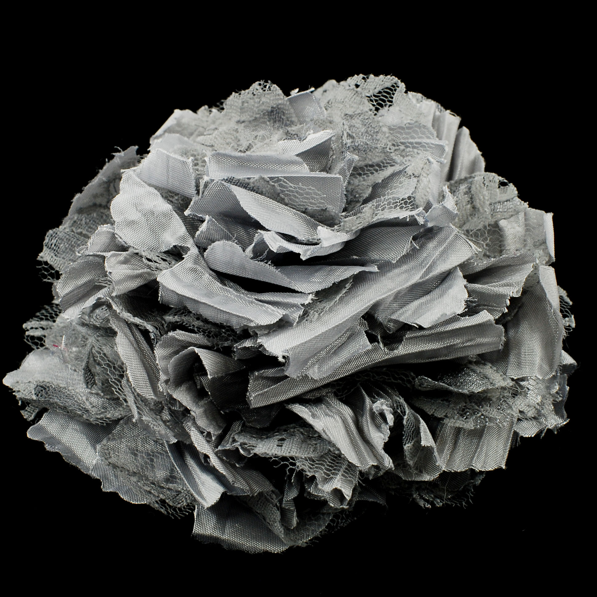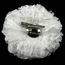 Fabric flower Brooch. Wrinkle fabric with lace. Color option : White, Black, Red, Grey, Tan; Size: Width 4 inches; Height: 3 inches