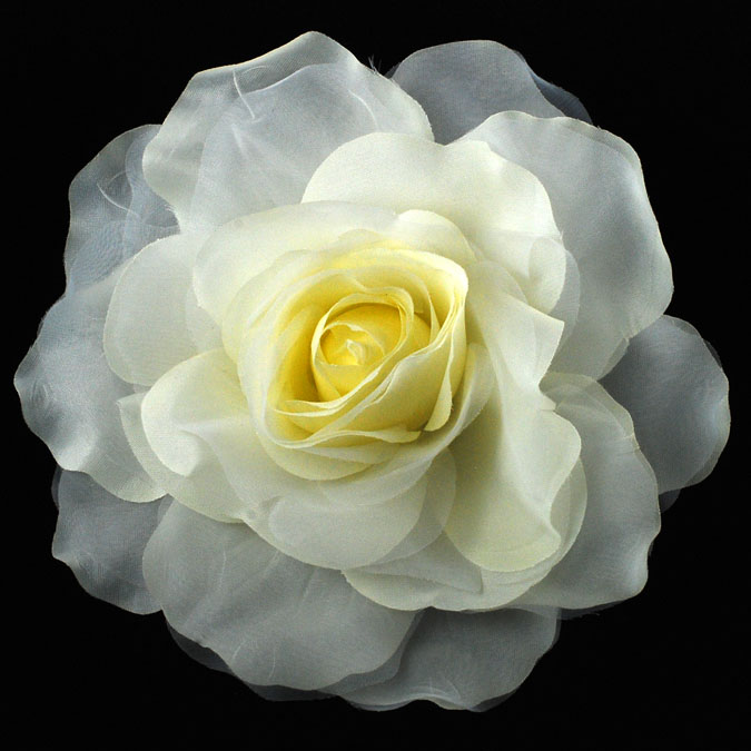Large fabric Flower brooch: Color: Cream, Black ; Size: Width: 6 inches; Height: 2 inches
