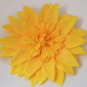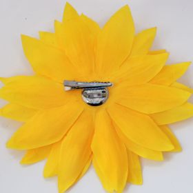 Large satin fabric flower in yellow color. This large flower is best for ladies' evening dress. The flower pin measures 7 inches across with a safety pin and alligator clip on the back.