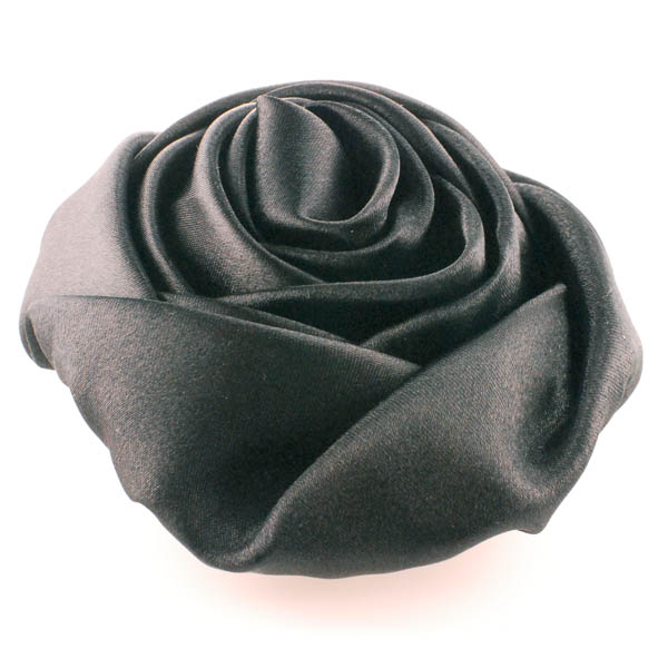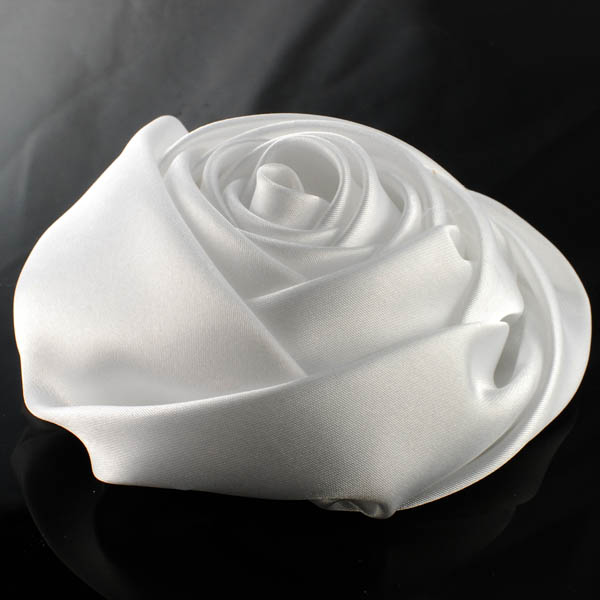 Handmade satin fabric flower pin brooches ; color option: White; Black ; Size: 3-1/2 inches