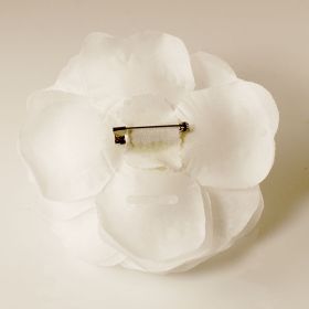 Fabric rose flower with pin in purple color. Size in diameter: 3-1/4 inches, height: 1-1/2 inches