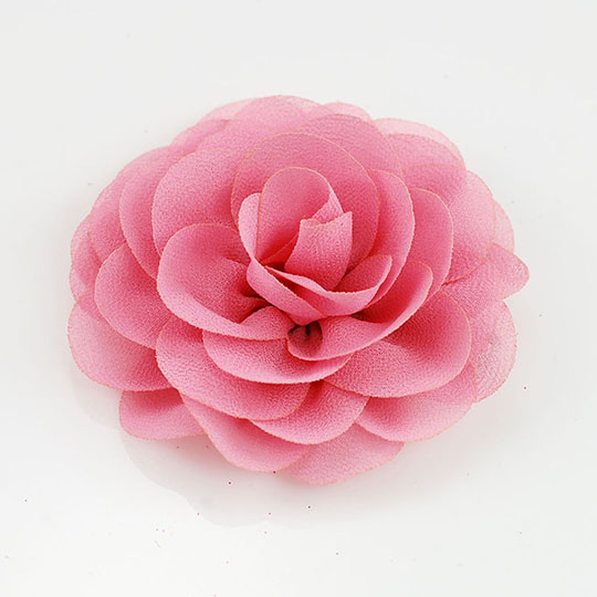 Handmade chiffon flower made of nice chiffon material in pink color with a pin on back. Flower size in diameter is 3 inches.