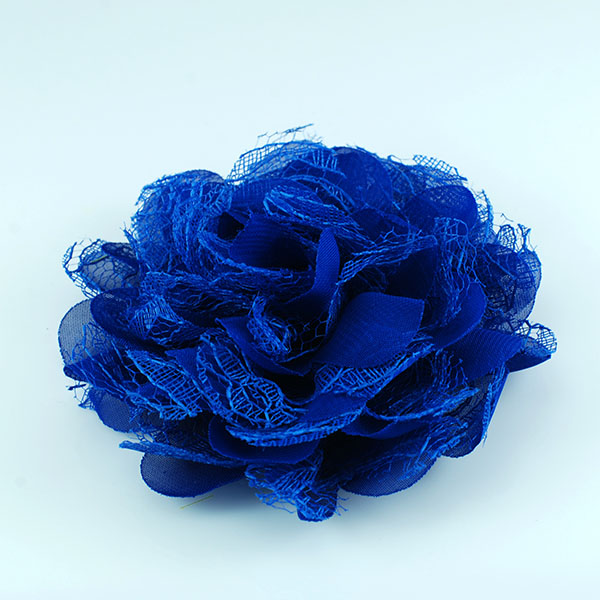 Fashion lace flower made with combination of blue organza and blue lace fabric. On the back of the flower, it is assembled with a clasp and alligator clip. The flower measures 4 inches wide, it is best decoration accessory for hair and dress.