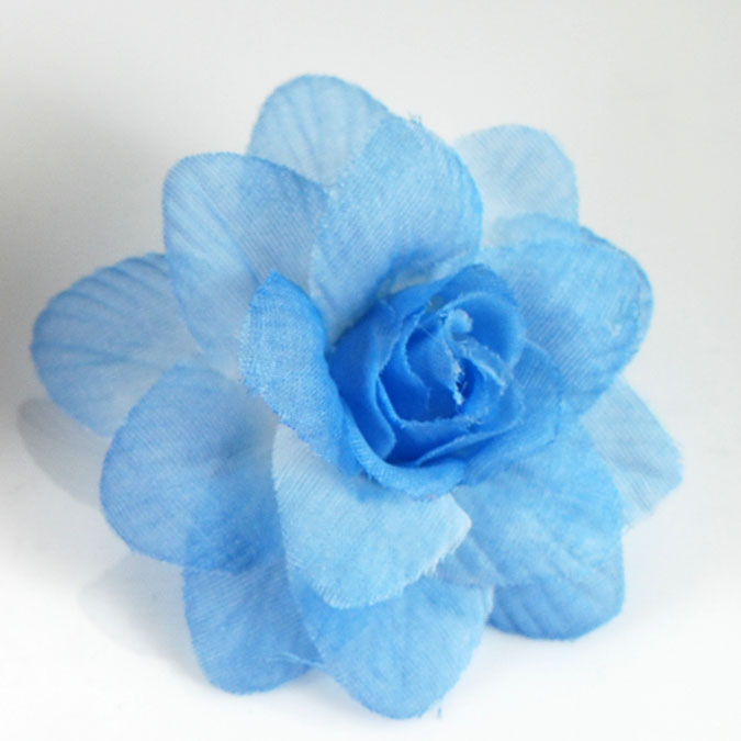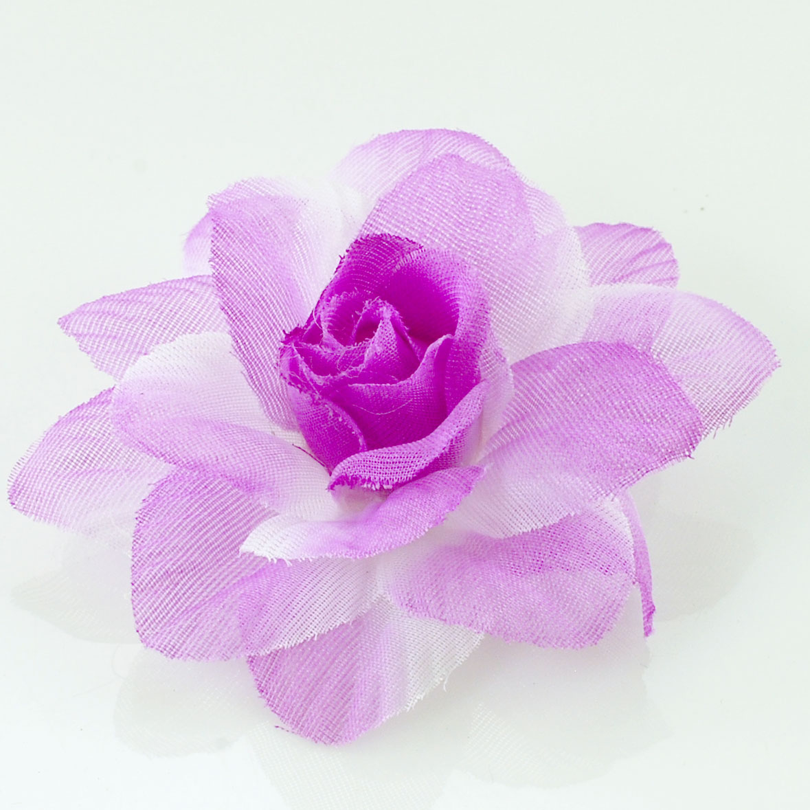 Tiny Flower with pin on the back. Color option: Purple, Red, Lt. Coffee, Dk. Blue, Lt. Blue, Med Blue, Pink. Size:width 2-1/2 inches; height : 1 inch