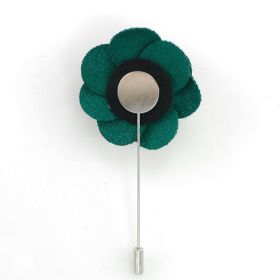 Men's lapel pin in green fabric color. The flower measures 1-3/4 inches wide, and the metal stick is 3 inches long.