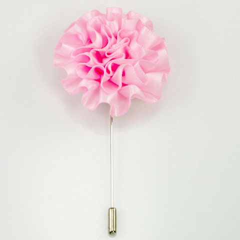 Men's flower lapel pin in pink color. The flower measures 2 inches wide, and the metal stick is 3 inches long.