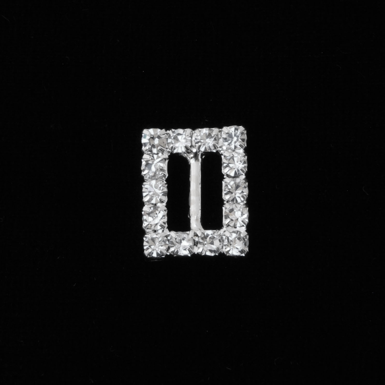 Tiny rectangle buckle made of clear crystal rhinestones on the buckle. Base plated in silver color