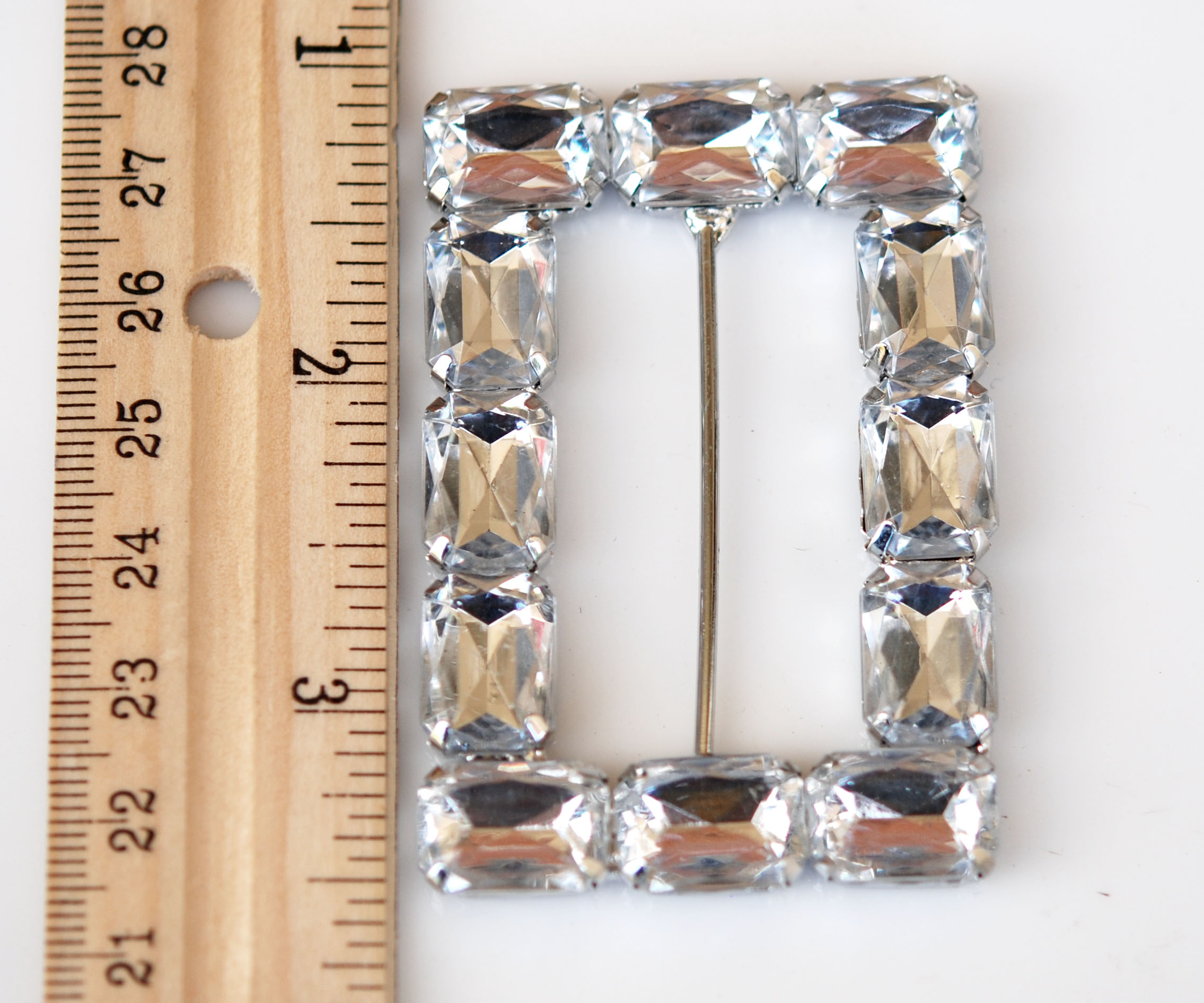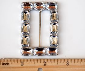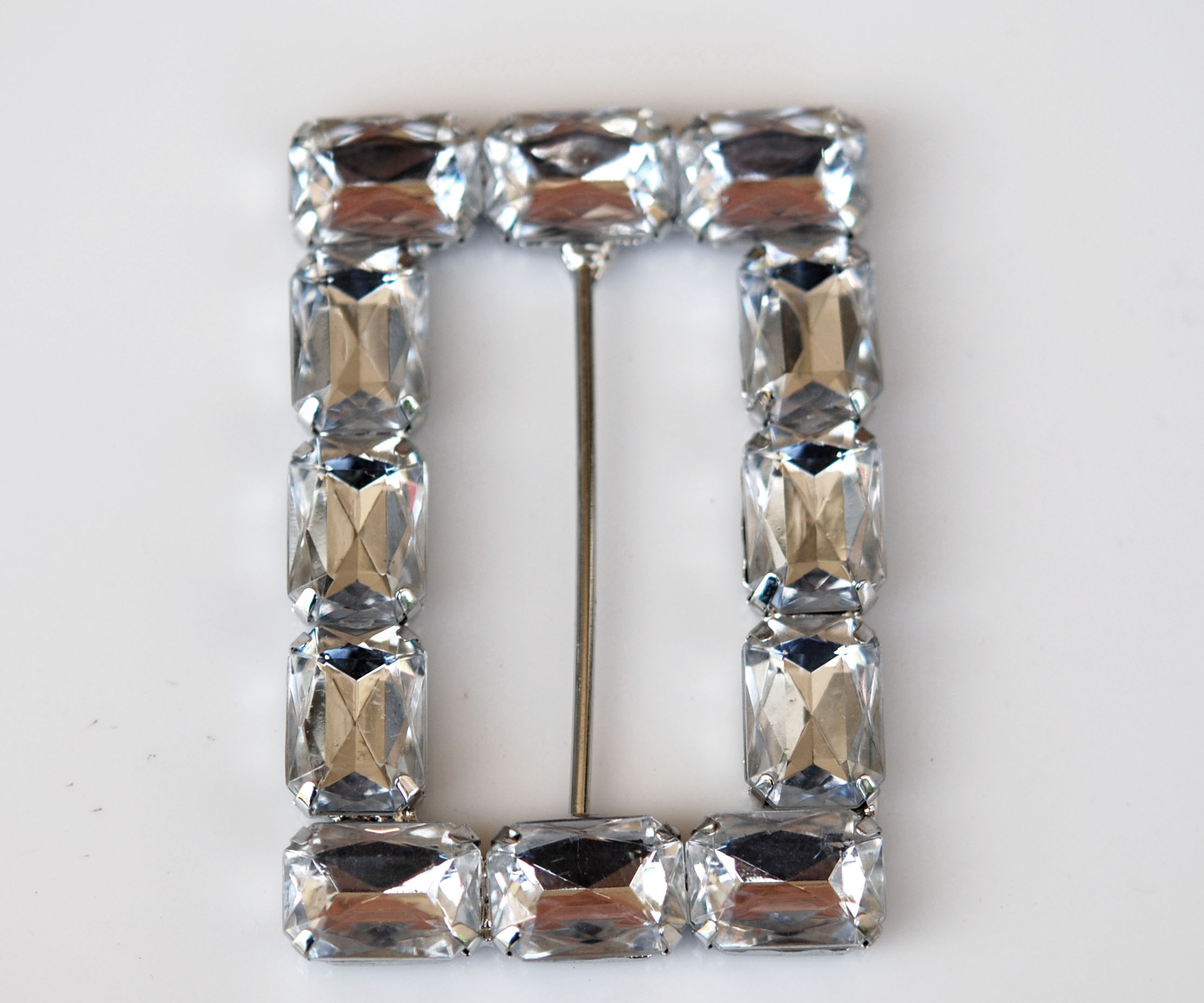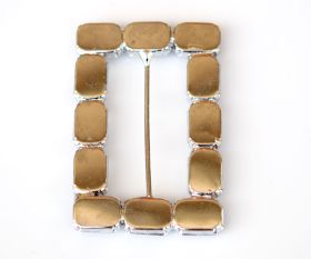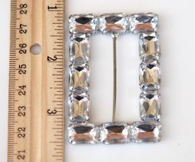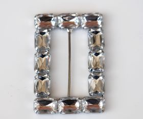 Rectangle Acrylic buckle made of high quality rhinestones with center bar. Base plated in silver color.