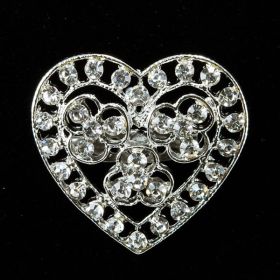 Heart wedding brooch with crystal rhinestones in silver plating, add a spark on your wedding table. The brooch is made of clear crystal rhinestones. Size: W 1-3/8 inches x H 1-1/4 inches